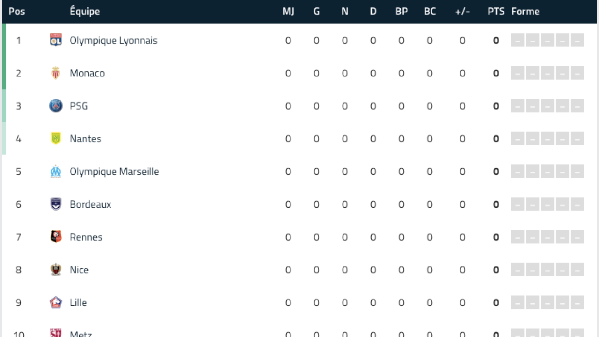 Ligue 1 Votre Classement De La Saison 2019 2020 Goal Com